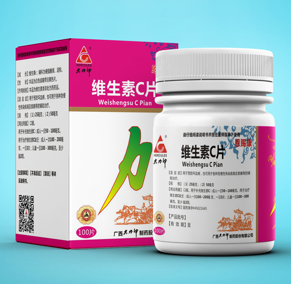 产品名称:维生素C片(25毫克、50毫克、100毫克)