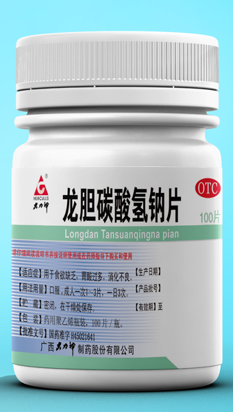 产品名称:龙胆碳酸氢钠片